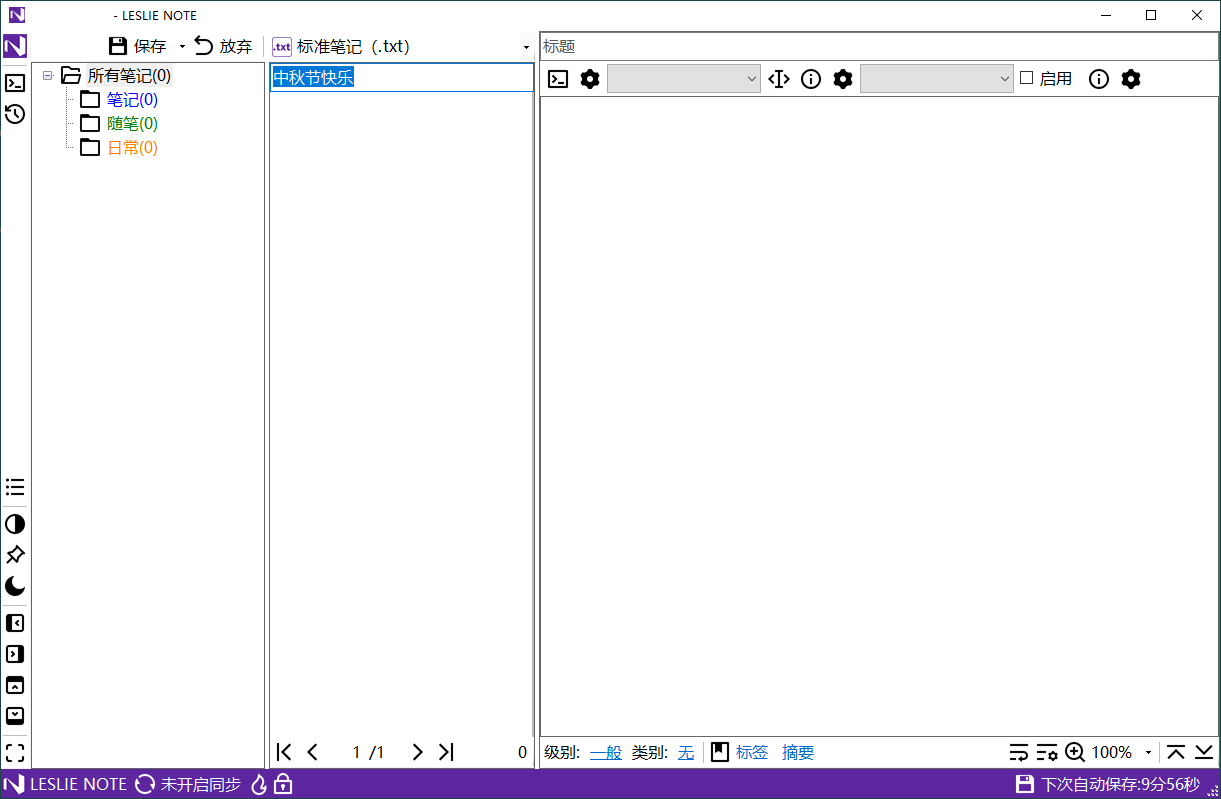 LESLIE Note是由个人开发的一款本地笔记软件,外观类似OneNote软件,支持多笔记簿、附件加密、历史版本等功能,数据完全本地存储,界面做的还不错,原生便携,是一款轻量的免费绿色软件。
