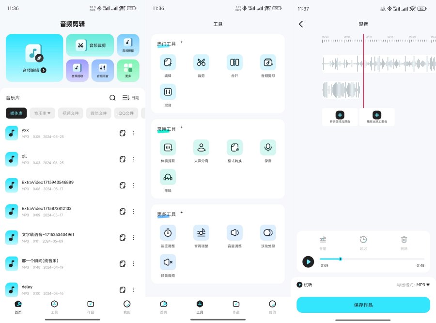 音频剪辑、音乐剪辑、音频拼接、音频降噪、音频提取、音频合成、铃声剪辑、视频转音频等。是你的音频剪辑音乐创作音乐节奏大师。