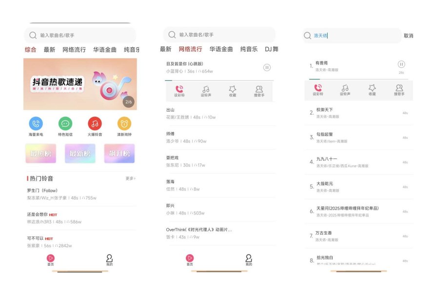 2. 支持分类和榜单,轻松发现热门及新奇铃声。