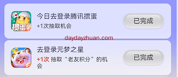 腾讯游戏人生做任务领现金活动,简单去登陆几个游戏(不用下载),就能获得抽奖机会可以获得老友积分,大概3次就能凑满2.5积分直接去兑换1元微信红包,另外,登录更多游戏可以获得更多积分,可以兑换1/5元的红包,邀请好友也送老友积分,红包数量有限,天天线报网的赚友赶紧上吧。 1、微信扫码进入,首次进去会得到2个老友币,完成页面指定的登录游戏任务、和邀请好友或者小号助力增加老友币,可以兑换1元、5元现金红包,数量限量。 2、有些游戏不用下载可以直接在小程序登陆,大家可以去做,看下图几个,3个做完可以获得3次抽奖机会,基本都能凑到2.5积分了。