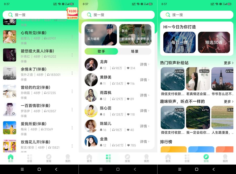 【应用简介】海量来电铃声,总能找到你喜欢的类型,专属来电,轻松一键设置,炫酷潮流的来电秀,丰富你生活的色彩!快来下载体验吧!